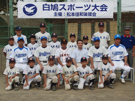 松本佳和後援会主催の白鳩スポーツ大会で、小学生に野球教室を行ってきました。