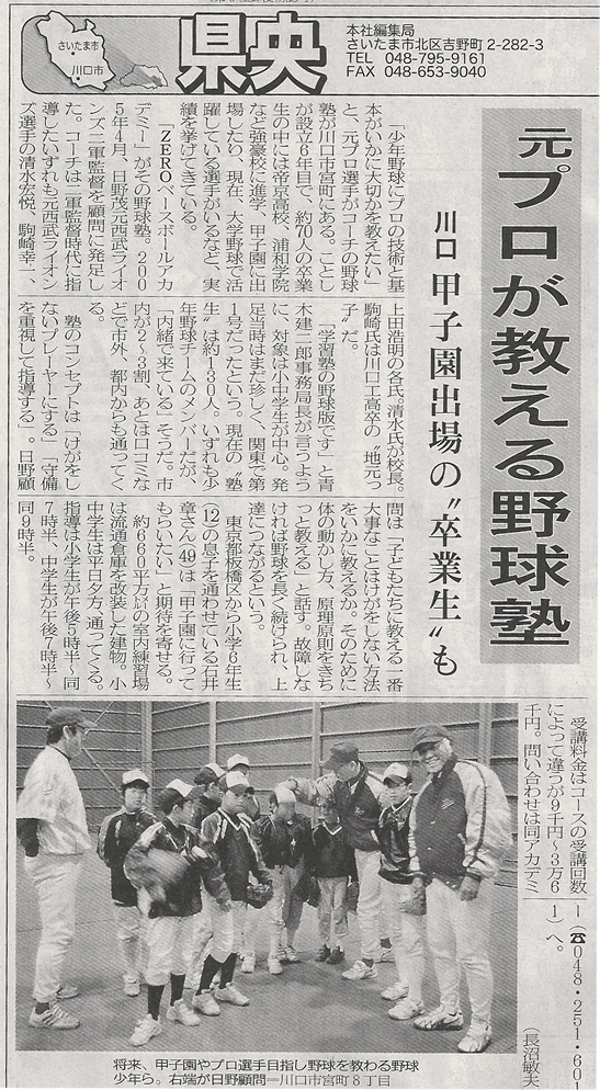 野球塾トップへ > お知らせ > 埼玉新聞